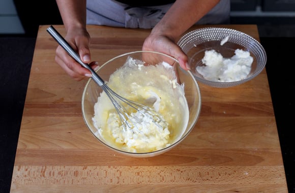 Ajoutez le mascarpone et mélangez jusqu'à obtenir une préparation homogène et bien lisse.