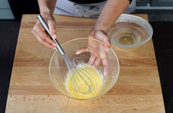 Dans un saladier, fouettez les jaunes d'oeuf avec le sucre jusqu'à ce que le mélange blanchisse.