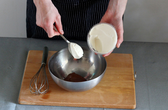 Dans un saladier, versez le Nutella et ajoutez le mascarpone.