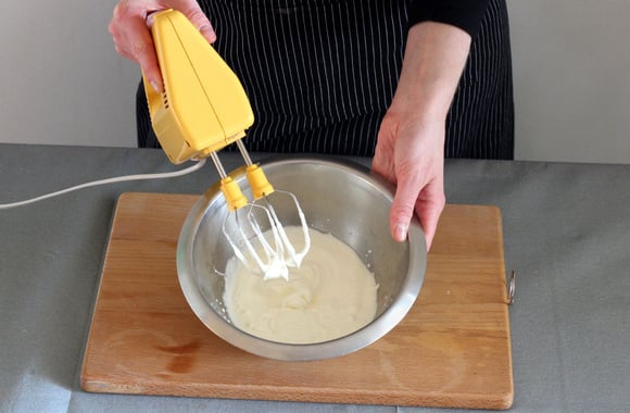 Montez la crème liquide et le sucre en chantilly. Réservez au frigo.