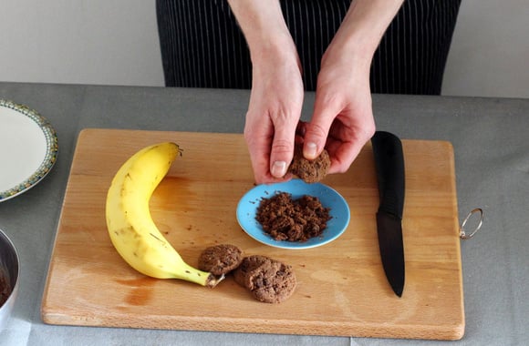 5Emiettez grossièrement les biscuits au chocolat, afin d'obtenir un crumble.