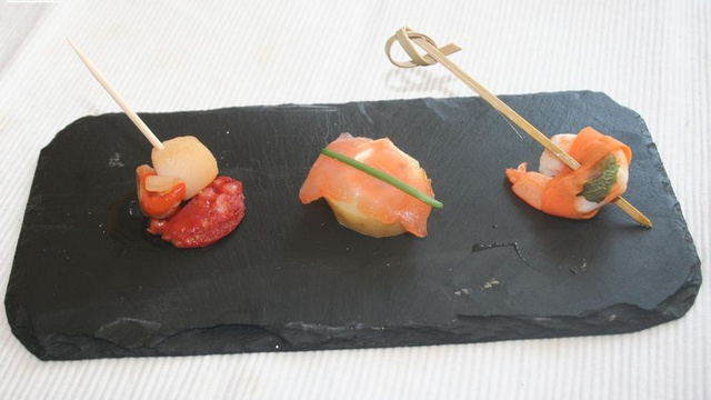 Assembler une noix et une rondelle de chorizo avec un cure-dent. - 2Cuire les pommes de terre à l'eau bouillante, laisser refroidir puis faire des rondelles d'un demi-centimètre d'épaisseur en gardant la peau.