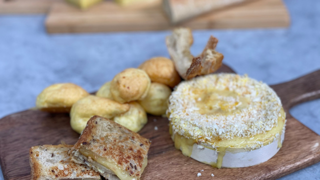 Pour un apéritif fromager nous proposons: un camembert rôti, des gougères au comté et des mini-croques au maroille.