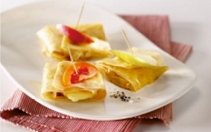 Répartir au centre de chaque feuille quelques dés de fruits, puis quelques lamelles de Reblochon. - 4