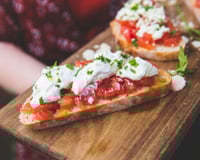 On adore ces tartines italiennes et je me suis amusée à les détourner avec différents fromages. A l’origine, cette tartine était faite uniquement avec de l’ail et un filet d’huile d’olive et elle servait à la dégustation de l’huile d’olive nouvelle mais aussi à ramollir du pain un peu dur. Elle a son équivalent dans toutes les régions ou pays producteurs d’huile d’olive. Saviez vous que Bruschette est le pluriel de Bruschetta ? Mais si vous mettez Bruschettas au pluriel comme je l’ai fait, personne ne vous en voudra.