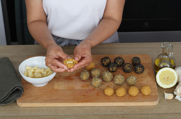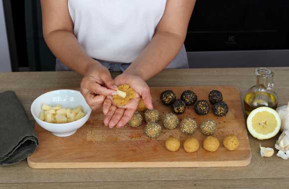 8Insérez un dé d'emmental dans les boulettes de falafel restantes.