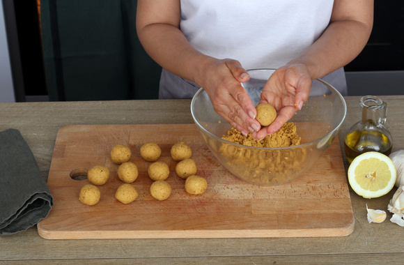 7Roulez la 2ème partie de boulettes de falafel dans le Zaâtar.