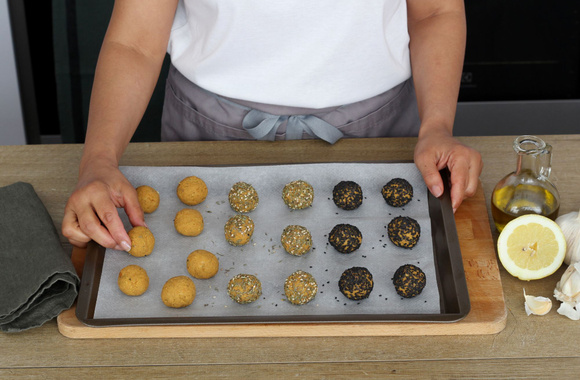 10Déposez les boulettes sur une plaque recouverte de papier sulfurisé. Enfournez et faites cuire les falafels 15 minutes.