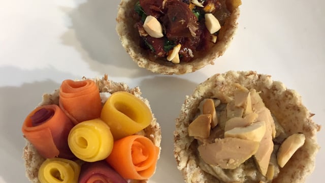 Des mini tartelettes pour un apéro qui change. Nous avons préparé cette recette dans le cadre d’une animation culinaire sur le salon Saveurs des plaisir gourmands en décembre 2017.