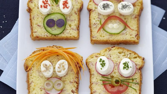 Décorez chaque tranche avec les éléments de décor en formant les yeux avec les Apérivrais et le reste avec les autres éléments en donnant des expressions différentes à chaque personnage.