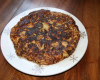 Au bout de ce temps retournez l'omelette à l'aide du couvercle ou de l'assiette, n'oubliez pas de remettre un peu d'huile dans la poêle et repartez pour vingt minutes de cuisson à feu doux.