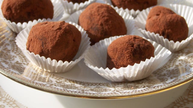 Vous pouvez aussi mettre dans la truffe un raisin sec imbibé de rhum, dans ce cas alléger la dose mise dans le chocolat !