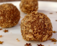 Faire de petites boules de chocolat et les rouler dans la poudre de crêpes dentelles.