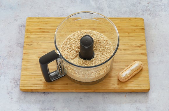 1Mettez les biscuits cuillères coupés en morceaux dans le bol d'un robot. Mixez jusqu'à obtenir une poudre.