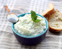 Ajoutez le yaourt égoutté, l’ail, la menthe et mélangez.
