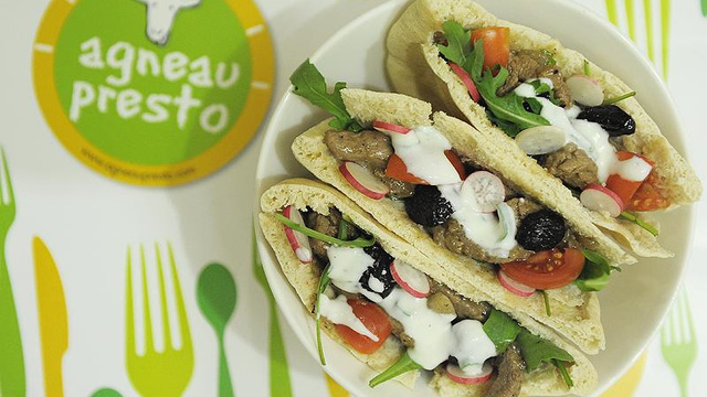 Mettez le tout dans un saladier puis assaisonnez le tout de vinaigrette. Mélangez et laissez de côté. Garnissez chaque pain pita que vous avez préalablement chauffé de salade-tomate-radis puis mettez généreusement dessus le kebab d'agneau. Servez et dégustez avec une sauce blanche de votre choix.