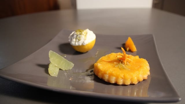 Mousse de citron , zeste de citron vert confit :