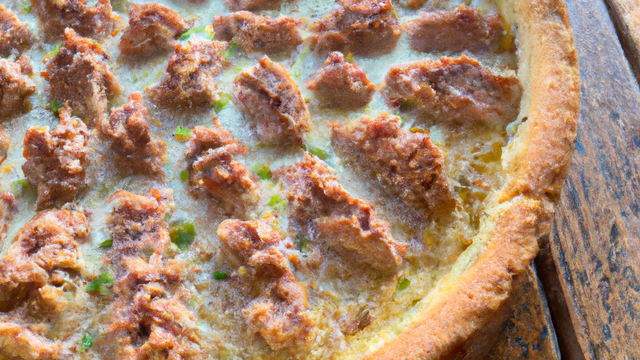Une pâte feuilleter recouverte de moutarde, de thon, de champignons, de pommes de terre et de fromage, avec de la crème.