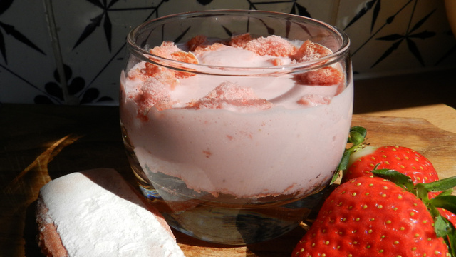 Faire un coulis avec les fraises et les 80g de sucre, au mixer ou blender.