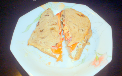 Faire un sandwich avec des légumes carottes-poivron en les coupant en lanières.
