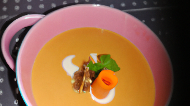 Servir le velouté de carottes bien chaud dans des tasses ou des verres. Agiter le siphon et déposer l'espuma sur les tasses.