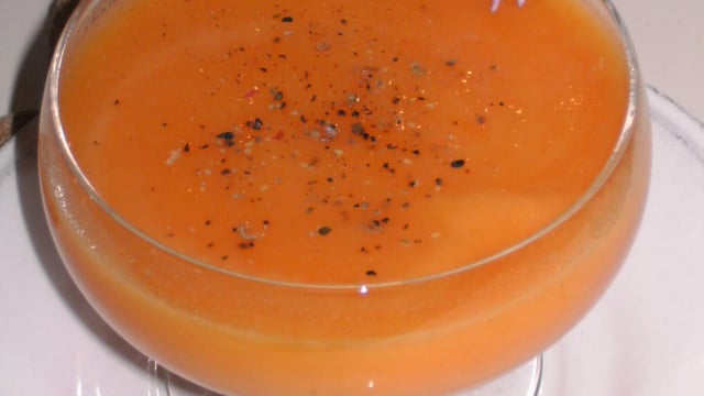 Une soupe d'automne douce par la carotte et relevée par le poivre aux baies et le cumin.
