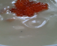 Un doux potage à la douceur de mascarpone et de saumon fumé.