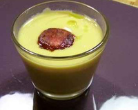 - Faire réchauffer la soupe, la verser dans des verrines, ajouter quelques gouttes d'huile de truffe, et poser les rondelles de chorizo dessusServir chaud