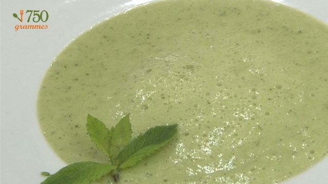 Mixez le tout avec le fromage et quelques feuilles de menthe.
