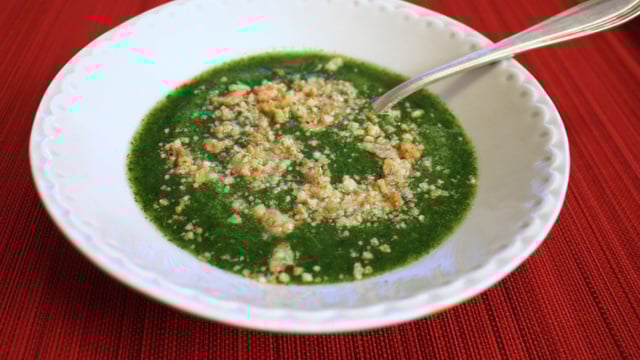 Un crumble au roquefort pour apporter du peps et du croquant à un velouté de cresson.