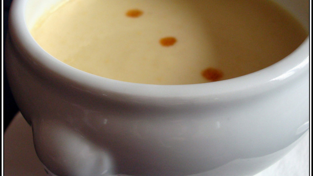 Mixez le tout, ajoutez la crème, et passez le velouté dans une passoire pour que le velouté soit bien lisse. Poivrez.