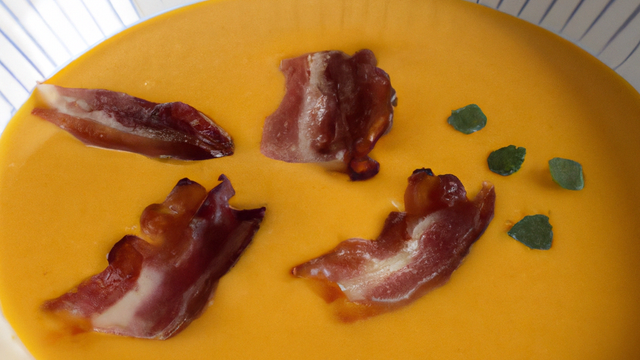Couper la chair du potiron en dés, mettre à cuire 40 mn, déguster avec des lamelles de bécon grillés.