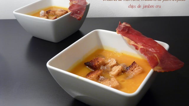 Un velouté de potiron traditionnel revisité avec des épices et des garnitures qui le modernise !