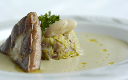 3 - Un fois les haricots cuits, retirer le bouquet garni, le pied de veau et la poitrine. Mixer les haricots avec le fond puis passer au chinois. Crémer et vérifier l'assaisonnement.