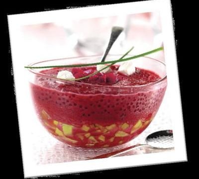 Réservez 50 g de betterave. Mixez le reste avec 1 l d'eau ; réservez 20 cl du jus obtenu. Portez le mélange à ébullition puis versez les Perles Japon TIPIAK en pluie tout en remuant. Faites cuire 30 min. à couvert et à feu doux, en mélangeant régulièrement.