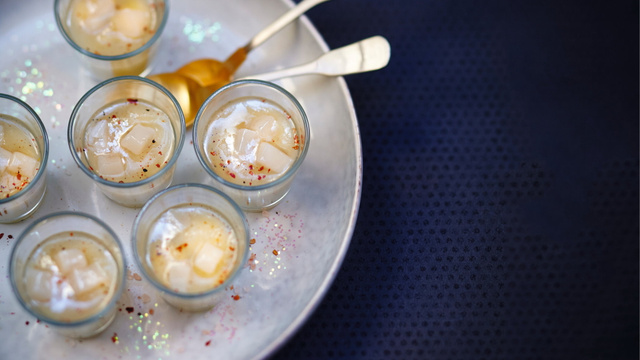Servez le velouté chaud dans des petits verres puis répartissez les Saint-Jacques sur le dessus.