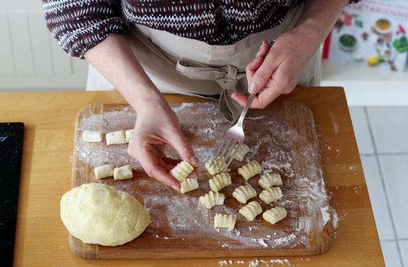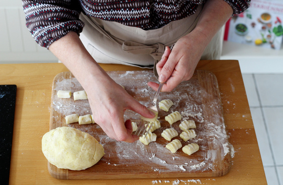 Bon à savoir : Ne faites pas vos gnocchis trop petits car ils ne seront pas moelleux. Coupez des morceaux de pâte de la largeur de votre fourchette.