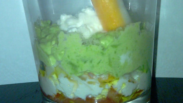 Verrine avocat-surimi au cottage cheese.