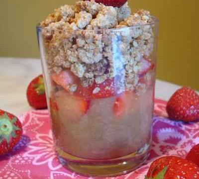 Au moment de servir, sortez vos verrines et parsemez "généreusement" de crumble encore chaud : ça crépite...