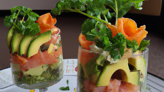 Ajouter dessus le guacamole. Découper le saumon en fines lanières et ajouter dans les verrines.