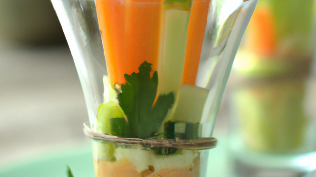 Mettez une partie dans le verre, ensuite prenez le brochet mélanger avec la mayonnaise. Salez et à poivrez, mettez dans chaque verre une partie, prenez le jaune d'oeuf mettez du persil et finalisez au dessus.