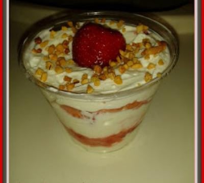 Dans chaque verrine, mettez une couche de crème, une couche de fraise en morceau et enfin une couche de purée de fraise.