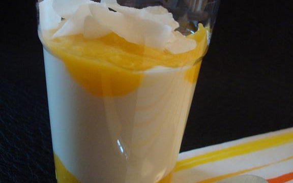 Verser 1 c à c de coulis dans le fond de chaque verrines. Recouvrir ensuite de préparation au fromage blanc et terminer par 1 c à c de coulis et saupoudrer de vermicelles