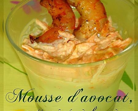 C'est à base de mousse d'avocat, de carottes râpées mélangé à de la mayonnaise fait maison et des crevettes grillés à la poêle.