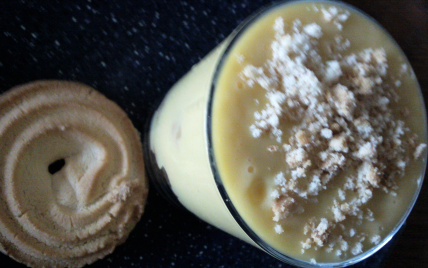 Dans les verrines, mettez du sablé émietté remplir avec la préparation et finir avec le reste du sablé.