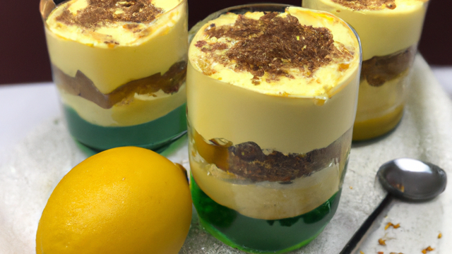 - 6Montage de la verrineVersez alternativement la crème de citron et la mousse de mascarpone, de façon à zébrer de jaune et de blanc. Disposez en dernier de crumble au chocolat, et saupoudrez de sucre glace.