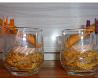 Mettre dans la verrine, foie gras, purée de poire et miettes de pain d'épices, en couche successive. Terminer par le foie gras et un tour de poivre.