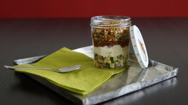 Faites ces verrines dans un pot de confiture. Vous pourrez les emporter facilement lors de vos pique-niques et impressionnez vos amis!
