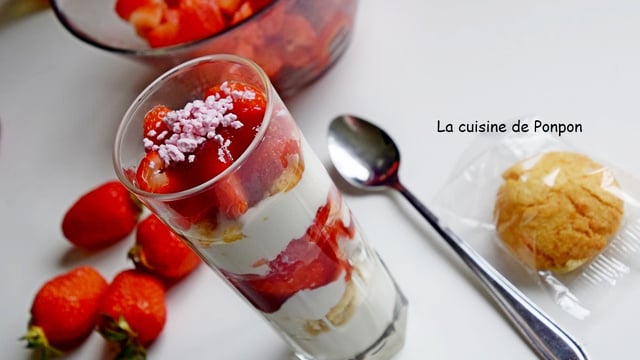 Pour ma part, j'ai fait celle-ci: 2 c à s de yaourt, amaretti un peu émietté, 2 c à s de yaourt, 1 c à s de sirop de fraise, fraises, 2 c à s de yaourt, amaretti un peu émietté, fraises, 2 c à s de sirop de fraise, fraises, 2 c à s de sirop de gingembre et crumble fraises.