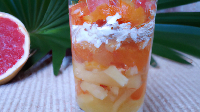 Râper le zeste du pamplemousse lavé avant de le peler à vif et de récupérer les quartiers. Dans une casserole, faire revenir l'oignon rouge finement ciselé dans un filet d'huile d'olive. saupoudrer de gingembre moulu puis ajouter les quartiers et le zeste de pamplemousse, le miel, quelques gouttes de vinaigre de vin, le sel et le poivre. Laisser cuire à feu doux environ 20 minutes en remuant de temps en temps.
